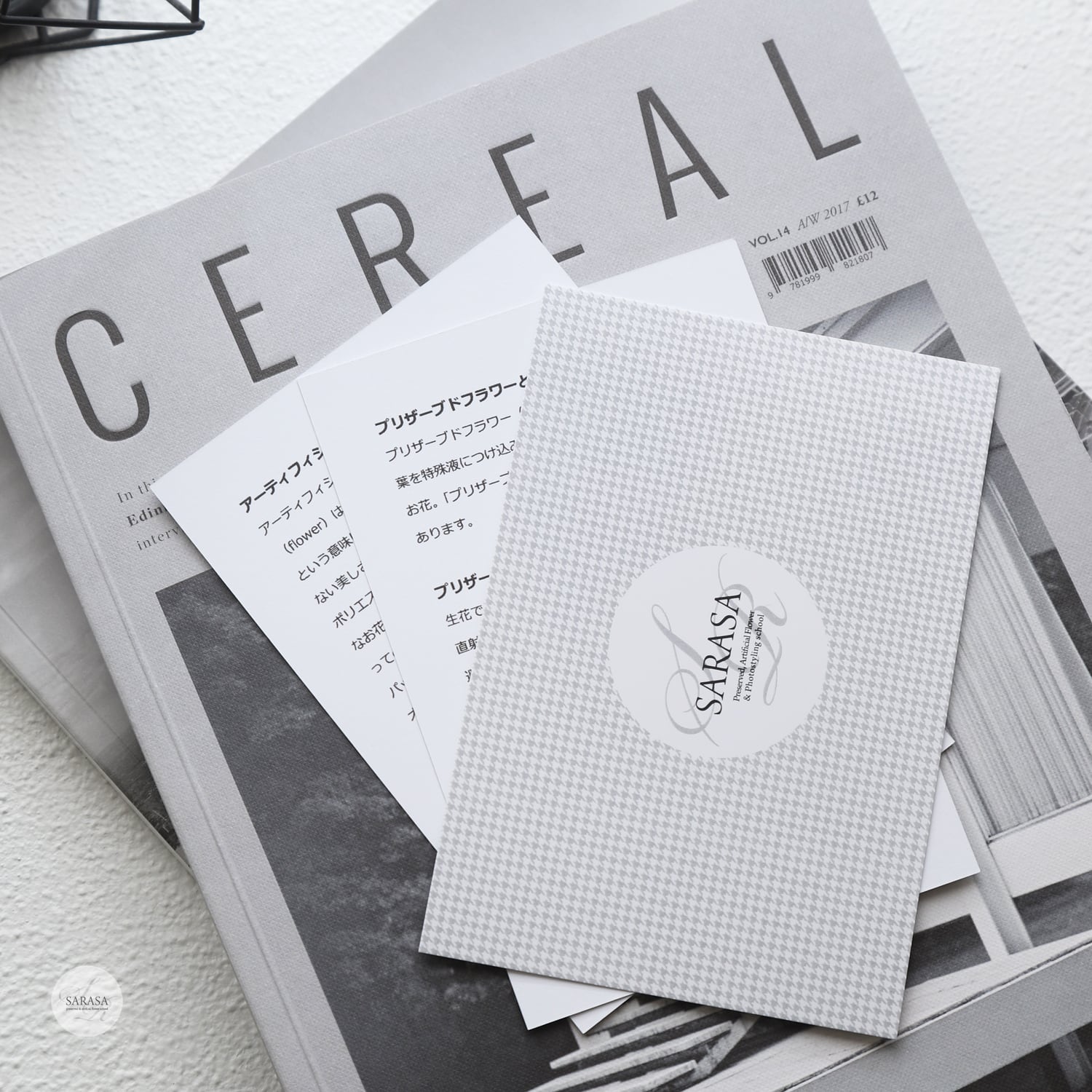 アーティフィシャルフラワーの取扱説明を記載したカードを、