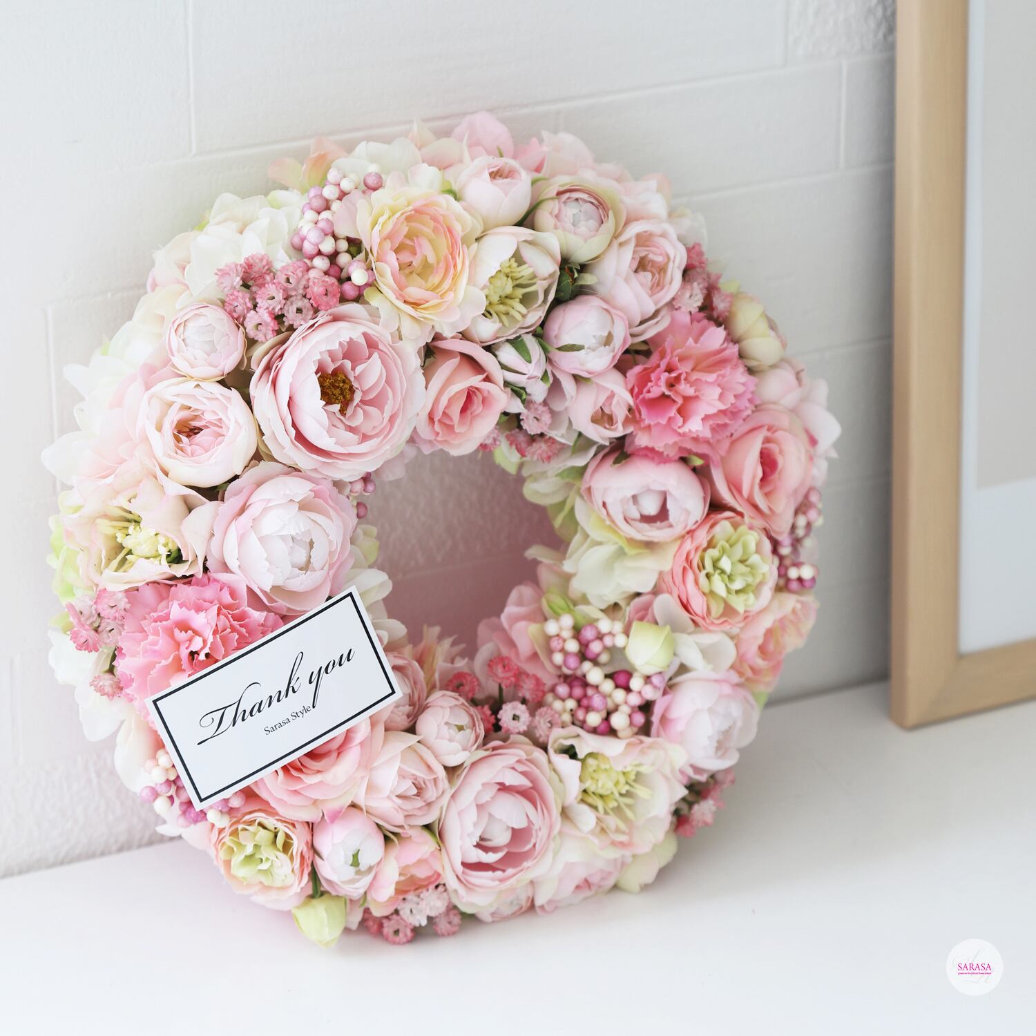 ホワイトピンクローズのリース(直径約27cm)