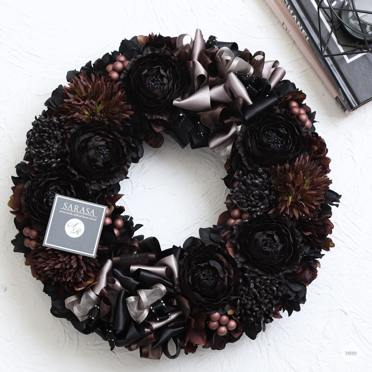 ブラウン&ブラックのラナンキュラスリース(直径約32cm)