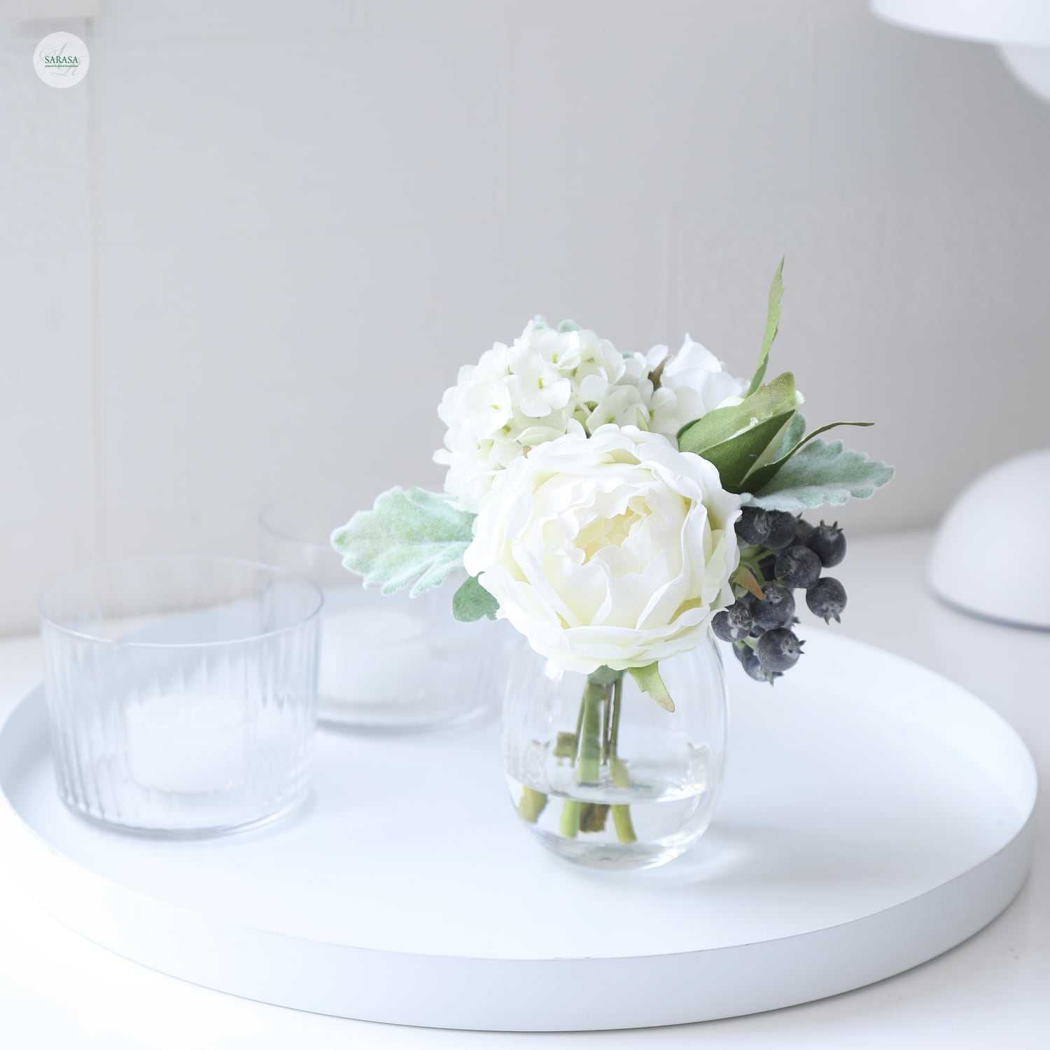 丸みのあるガラスベースに入れた