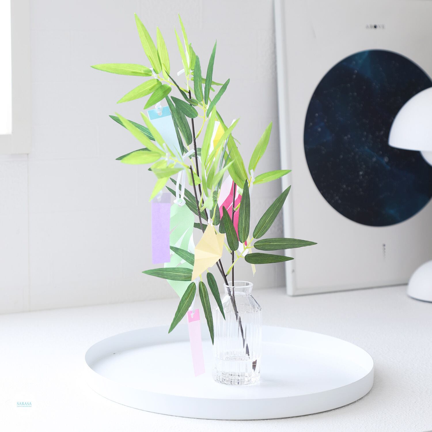 ミニ笹竹をガラスベースに入れた