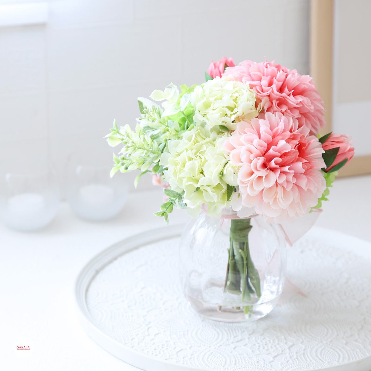 (マジカルウォーターアレンジ)ホワイトローズピンクのダリア
